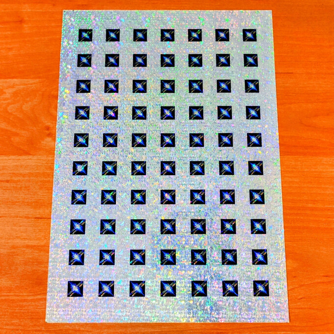 Пример изделий с полимерным голографическим покрытием для цифровой печати всеми видами принтеров